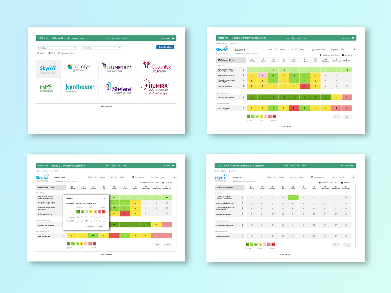 Competitive assessment dashboard design concept for globally recognized medical brands