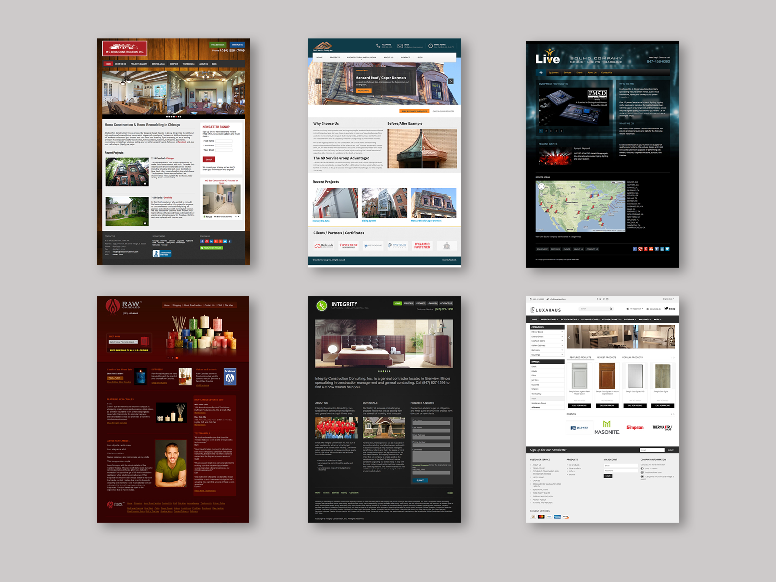 Examples of websites produced for small businesess